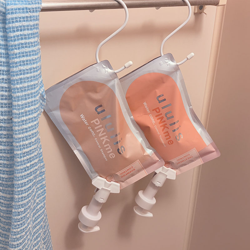 シャンプーとかリンスを、詰め替えパックのまま使用できるやつ。